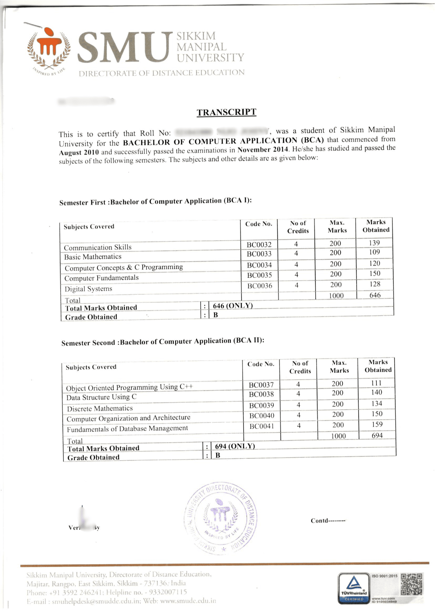 - Educational Proof Official Transcripts from Sikkim Manipal University serve as official proof of education to validate your course from the university.