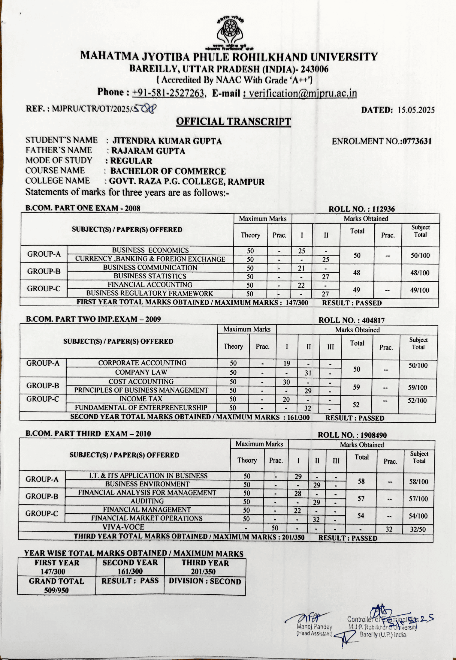 Need your Mahatma Jyotiba Phule Rohilkhand University (MJPRU) transcripts for higher education, licensing, job opportunity, or PR immigration. It doesn't matter if you are applying directly or choose ‘Worldwide Transcripts’ for academic document procurement, understanding the procedure and timelines is essential. From application submission at an indian university to ECA submissions, we simplify your academic documentation journey with expert guidance every step of the way.Get Transcripts From Mahatma Jyotiba Phule Rohilkhand University, A Quick Guide