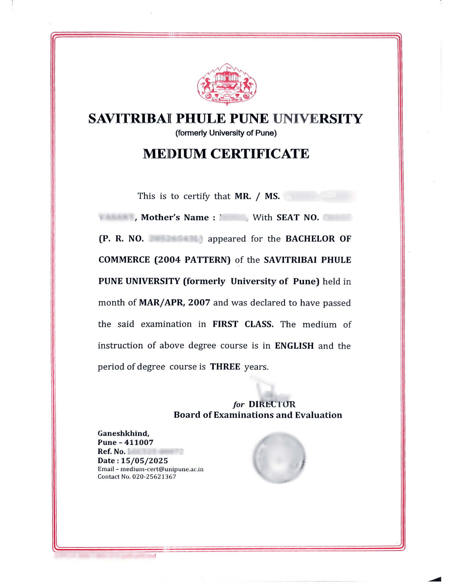 Getting your transcripts from Pune University evaluated by CES(2) is very easy just submit your documents, your qualifications get verified, and receive a detailed evaluation report that can be shared with universities, employers, or immigration authorities.