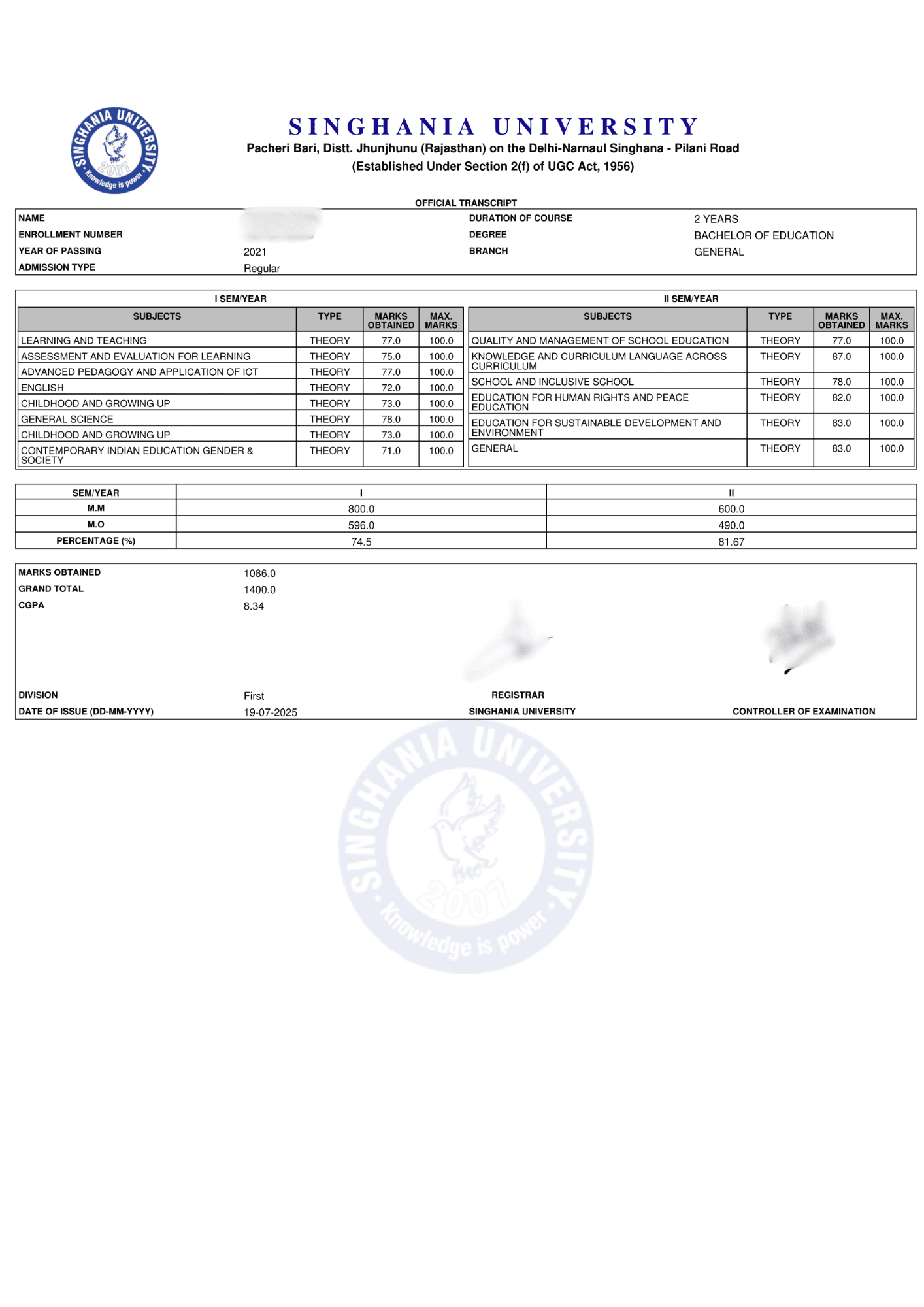 Get Transcripts From Singhania University