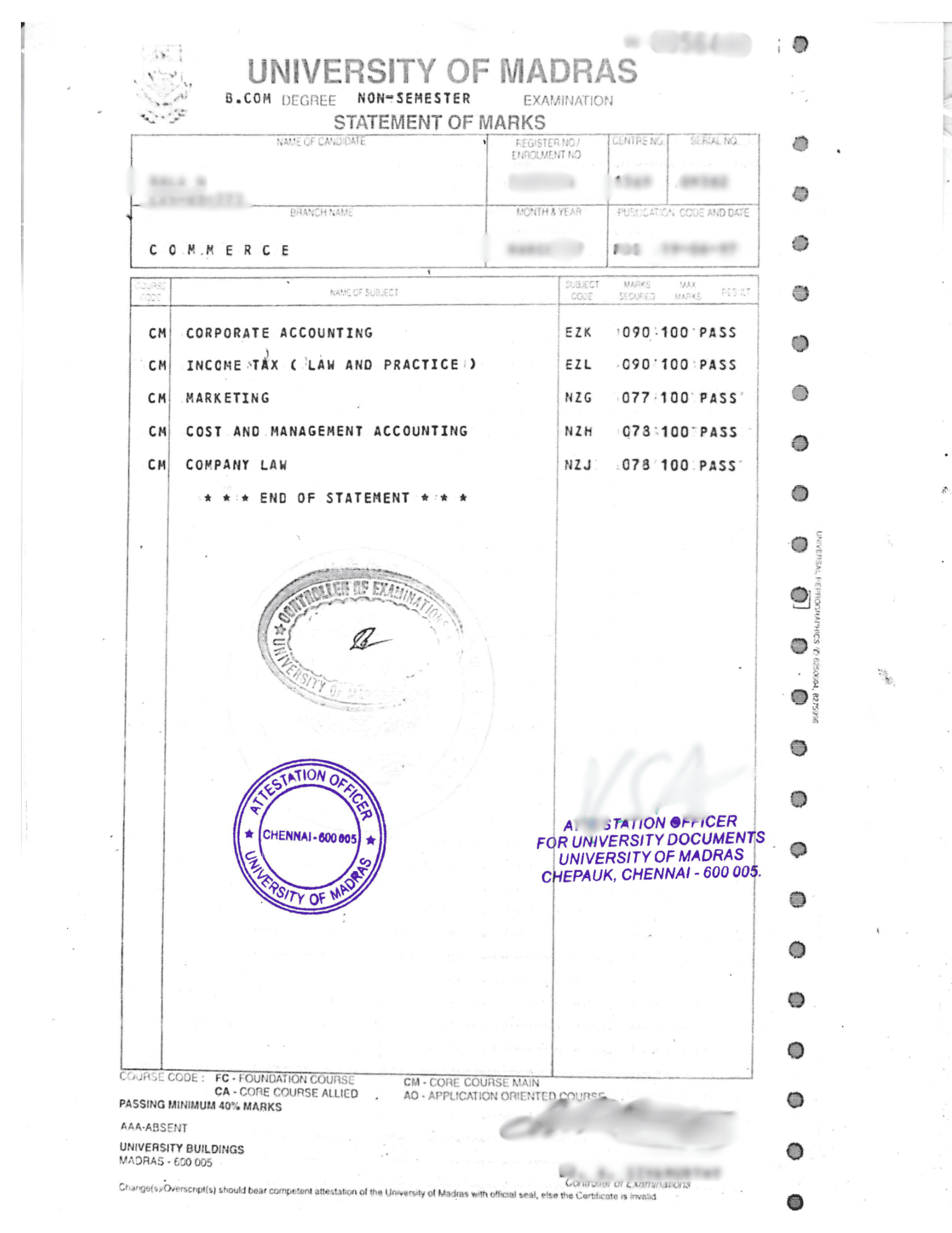 At Worldwide Transcripts, we simplify the process of obtaining Madras University Transcripts. No more multiple trips or delays—once your credentials are verified, our transcript agency ensures your electronic transcripts, including mark sheets, duplicate certificates, and ECA services, are electronically sent to your desired location within 24 hours. Partnered with top verification bodies like ECE(3), CES(4), and GCE(5), we guarantee a seamless, fast, and hassle-free experience.