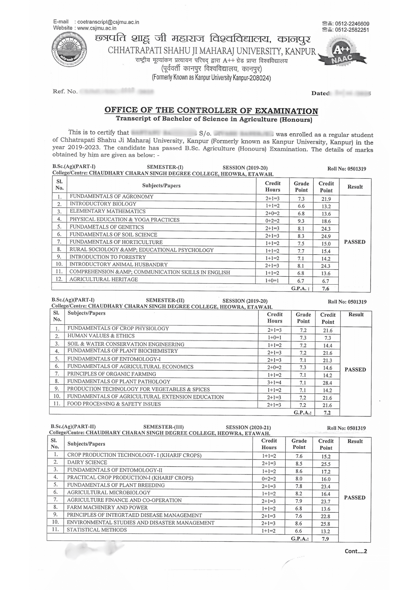 How to get transcripts from KANPUR UNIVERSITY (Chhatrapati Shahu ji Maharaj University Transcripts)