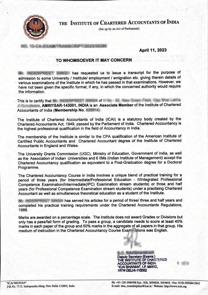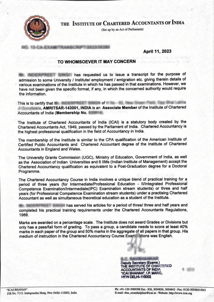Getting your ICAI official transcript assessed and evaluated by an ECA body like IQAS is essential to validate your credentials with the standards of the destination nation.